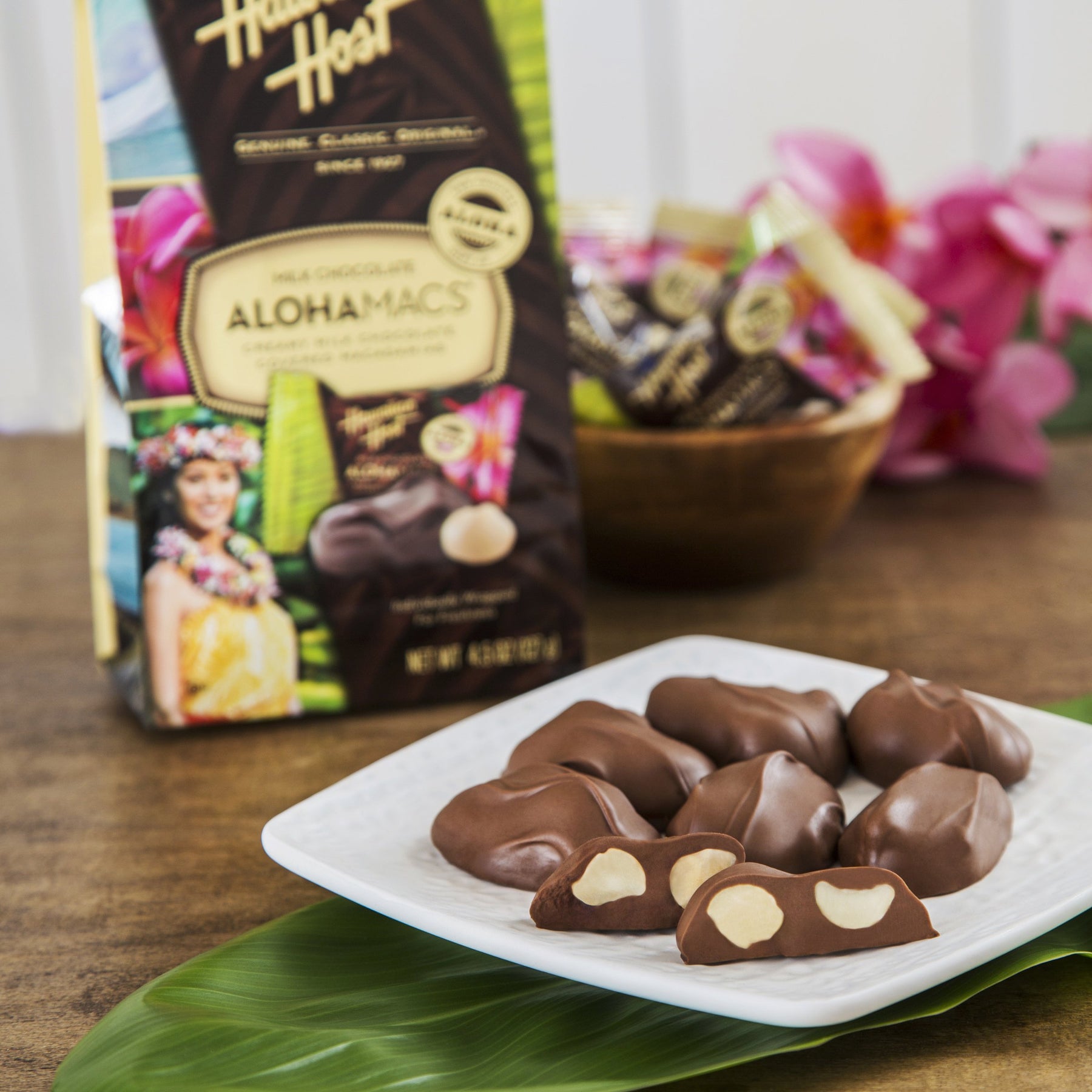 Consider our AlohaMacs collection an edible postcard from paradise! Featuring our finest macadamias coated in our hand-crafted chocolate, the Alohamacs Premium Milk Chocolate-Covered Macadamias Boutique Bag makes a unique souvenir.